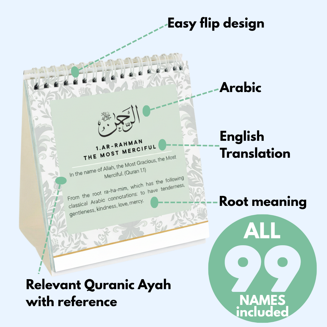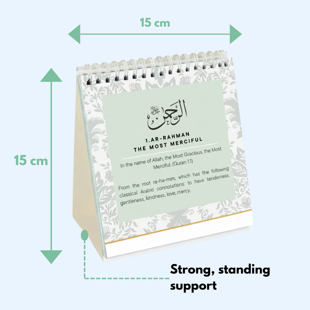 Featuring all 99 Names this undated desk display can be enjoyed at your own pace, year after year.
