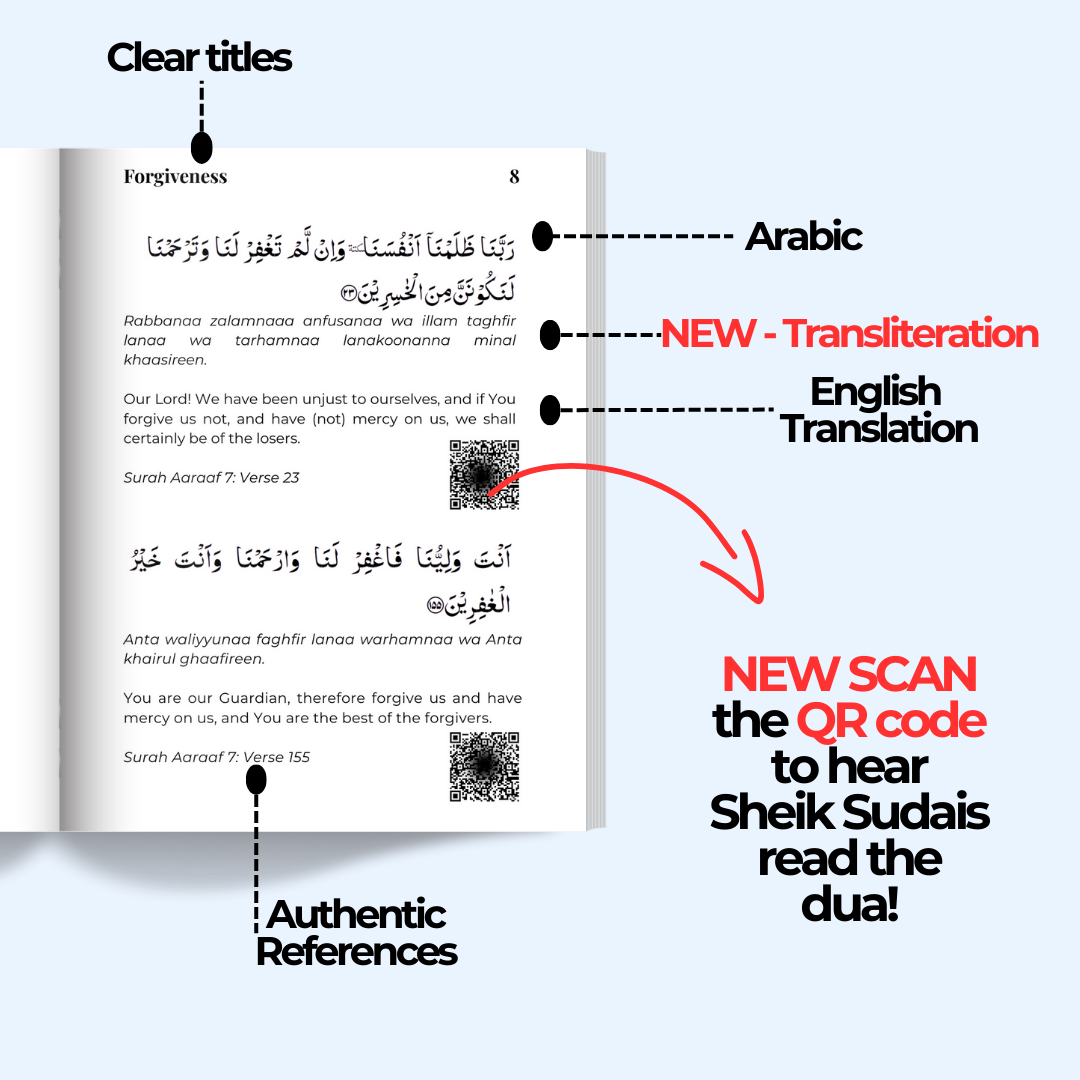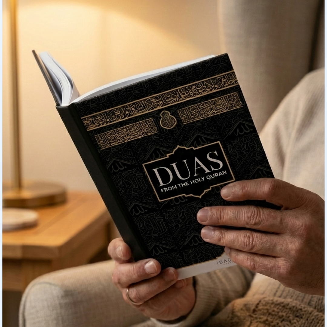 A beautifully designed Kaaba-inspired dua book containing 100 authentic duas from the Holy Qur’an, carefully curated for daily life.